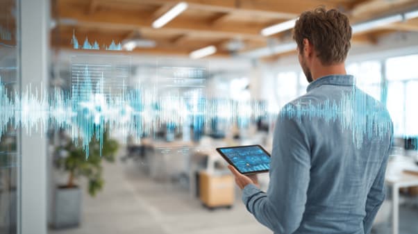 The most sophisticated deployments are moving toward continuous acoustic monitoring. Sensors embedded in the workspace measure noise levels, speech intelligibility, and occupancy patterns in real time, feeding data into dashboards that let facilities teams identify problem zones, track the impact of interventions, and make adjustments as the space and its usage evolve. It's the same data-driven approach that progressive companies already apply to air quality and energy consumption, applied to the acoustic environment.